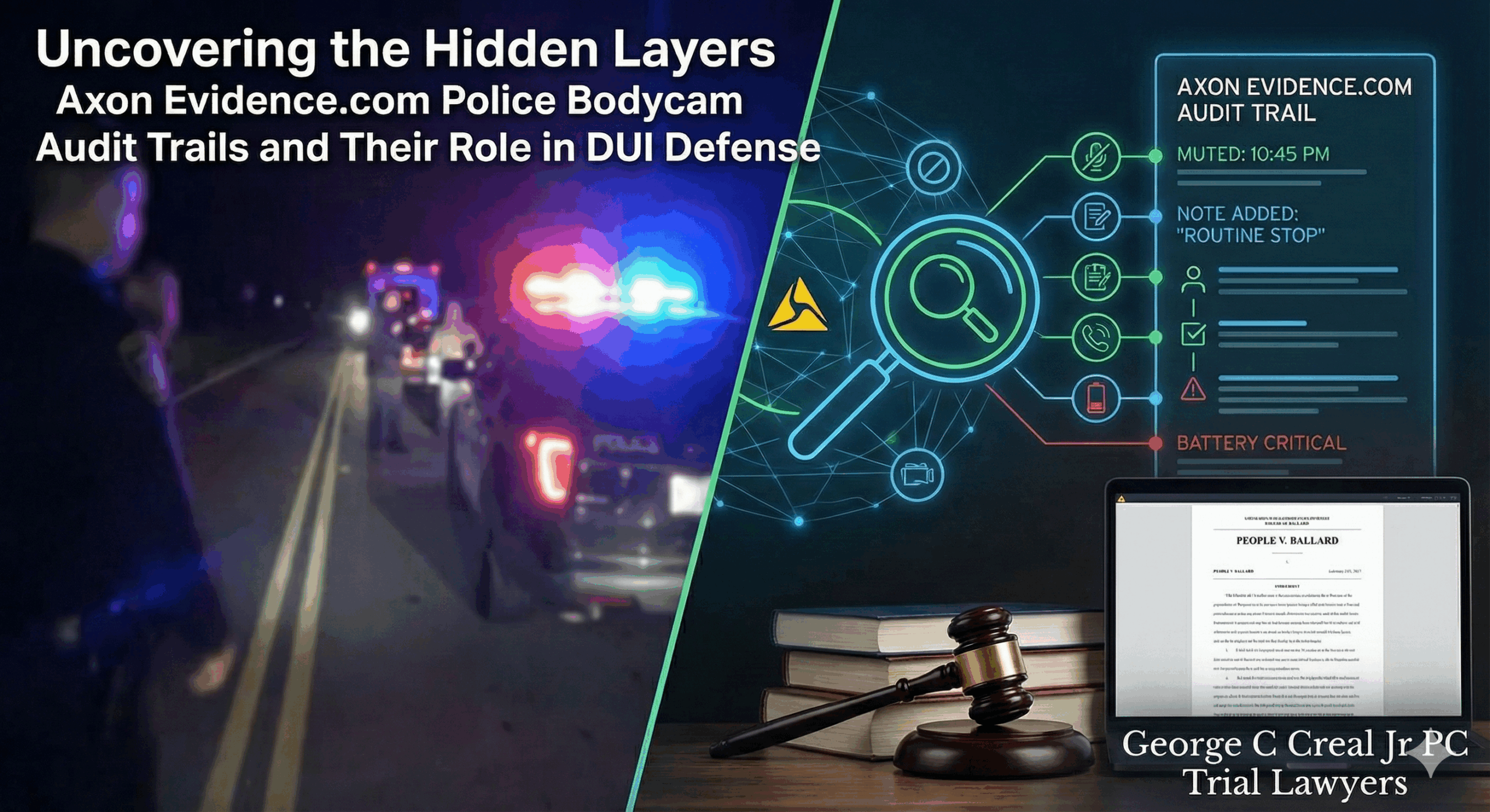 Many lawyers don't know to specify "true evidence audit trails" in their discovery requests, settling for basic footage instead. This oversight can be costly in DUI cases, where even minor discrepancies in bodycam handling could lead to suppression of evidence or reasonable doubt.